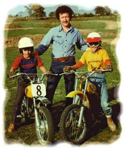 “This was my first bike. It was a 1976 Yamaha GT 80, and I got it when I was 7 years old from my mom and dad. My dad and my brother Robert are in the picture with me. The tires were harder than the metal fenders. The pipe would blow smoke circles. I put #8 on it because I was going to turn 8 years old soon. I never raced that bike, but it was my first. I did get both wheels off the ground before getting rid of it, though. That’s right, I was rad. Mud flap and all. Notice: I did not have the paper-plate front number plate. It was the TV-tray front number plate. Jealous?
