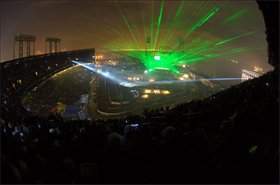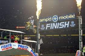 Lasers and fireworks lit the sky above AT&T Park as the Amp'd Mobile AMA Supercross Series rolled into San Francisco.