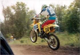 it to run pretty good, but after my first experience riding was on a brand new bike, this bike felt horrible on the track. The shock seals were all shot and the shock had no oil in it. You really had to hang on to keep from getting bucked off the back. Somebody must have really wanted this bike pretty bad, because I didn't have it long before it got stolen. This motivated me to save up all my money over the winter (I grew up in Wisconsin, where you can't ride from October to April), and was able to buy a used 1990 Suzuki RM125 in the spring. This was my first "real" bike. I