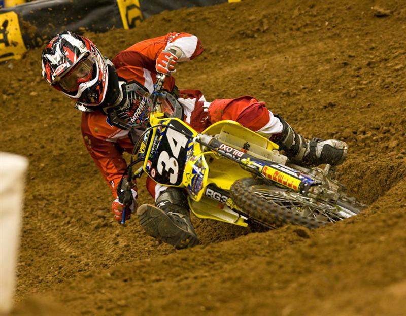 The 2009 Eastern Regional supercross series hasn’t gone exactly according to plan for Matt Goerke. Coming into the season, Goerke was a quiet favorite; he has finished on the podium in the past, was coming off a pretty solid season with KTM, and was back on a brand he’s very familiar with. Unfortunately, the Florida native has been plagued by poor starts this season, but his results are improving at every round. The Suzuki City-backed rider is currently 10th in points, and is very optimistic that he’ll be on the podium before season’s end.