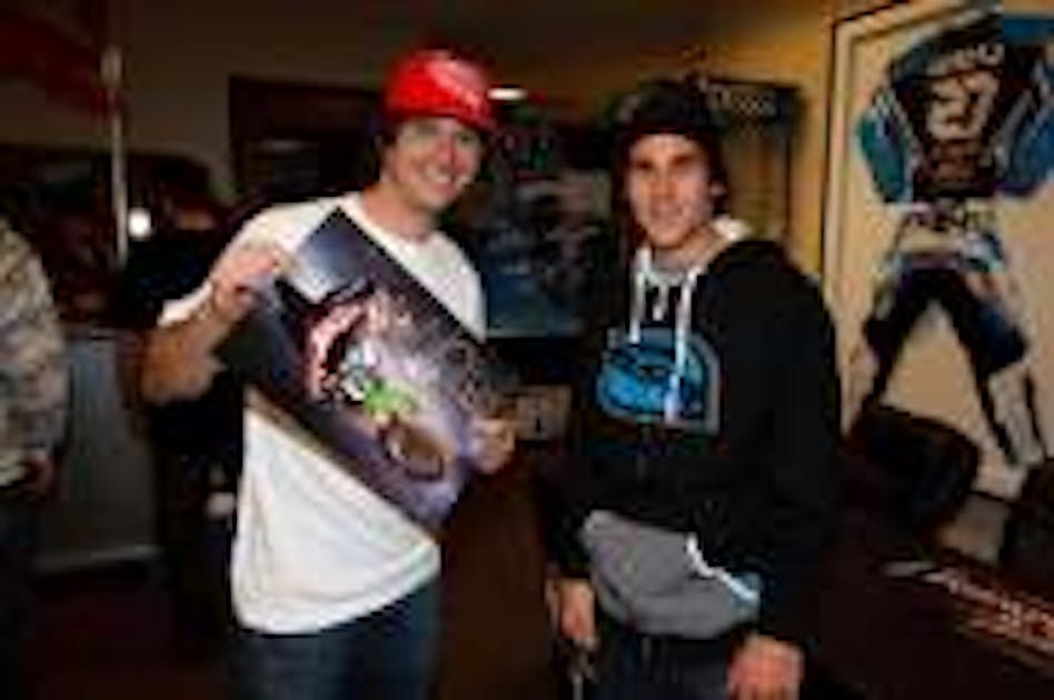Kevin Windham and Nick Wey swap posters.