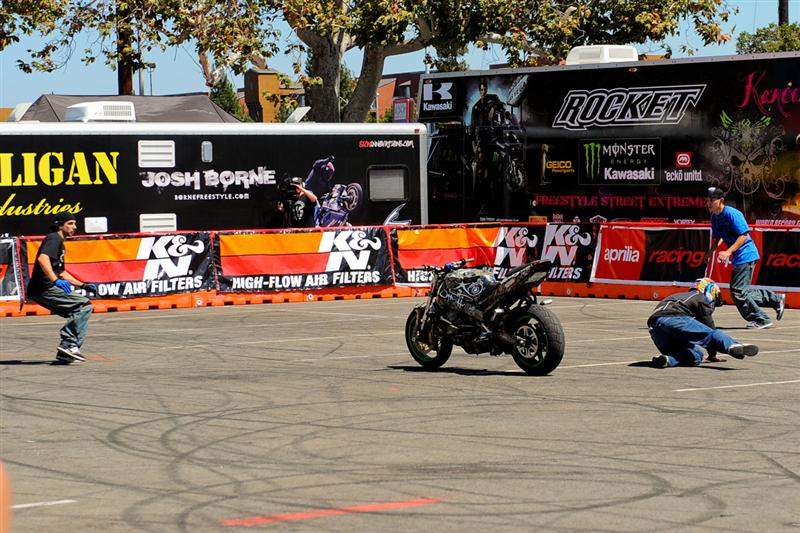 Fiolek grabbed her second-consecutive X Games Gold. Cox ![There was something new in the parking lot at X, with these flat-land street-bike freestylers performing.]()