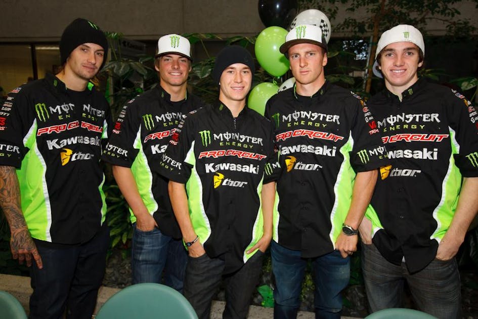 Home Supercross Motocross Multimedia Photo Galleries Gallery: Kawasaki Team Intro - Supercross Anaheim, CA Anaheim 1 (A1)Monster Energy AMA Supercross Championship Photos from today's official Kawi team intro Inside the team race shop Simon Cudby Ryan Villopoto's KX450 race bike Simon Cudby Team Pro Circuit: Hansen, Tickle, Baggett, Rattray, Wilson Simon Cudby Jake Weimer signs for a happy fan Simon Cudby Ryan Villopoto and Jake Weimer check out the team video Simon Cudby KX500 in the Kawasaki lobby Simon Cudby Hansen, happy fan, Tickle Simon Cudby RV looks lean and ready to go for this weekend Simon Cudby Jake Weimer describes what happened to his arm Simon Cudby Ryan Villopoto Simon Cudby Jake Weimer and Josh Hansen Simon Cudby Traxxis team truck Simon Cudby Josh Hansen and Tyla Rattray pose for a photo with the lovely Amanda Simon Cudby Jake Weimer's get well card was signed by everyone Simon Cudby PR wiz Agata Formato was excited to see the team! Simon Cudby