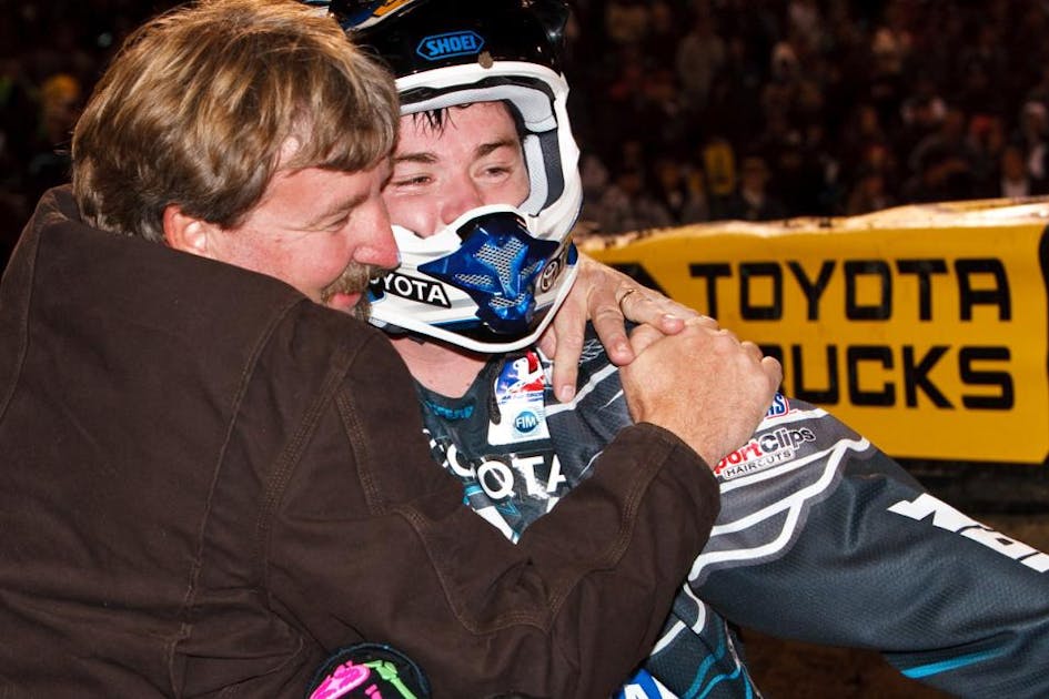 But, back to the theme, what does it mean to have true grit? For a supercross racer it means overcoming the track, his opponents, and most fearsome of all, himself. He has to be confident, but be aware of his ego. He has to push hard enough to make mistakes, but persevere. While searching for some whimsical words to grasp this, I keep bouncing back to a simple theme that the late great Jim Valvano said, which is to not give up. “Never, ever give up.”
