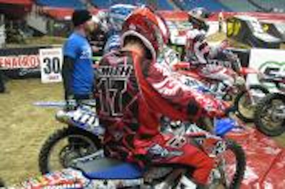 Kelly Smith has now been racing professionally for over fifteen years. Through this time he’s raced for virtually every manufacturer, from factory rider to privateer. And although he may have not won a well-known championship, he does have some impressive wins to his credit – like winning the 2000 High Point National on a KTM, and winning the 250 Class at the U.S. Open of Supercross on his debut race on Yamaha of Troy. Moving to Arenacross in 2008, Smith started off slow, but by series end he had racked up an incredible string of wins, significantly closing in on point’s leader and eventual winner Chad Johnson. Based on that 2008 season, many of us pegged him to be a shoe-in for the 2009 Arenacross Championship. However, a severely broken leg derailed that plan, and then with a black cloud following him, Kelly again broke his leg early in the 2010 season. A couple months later, Smith would regroup to race the Jacksonville Supercross where he holeshot the Lites class as a Honda of Troy replacement rider. This past summer I had heard from friends that Kelly decided to retire from racing to become a Real Estate Agent – so when I saw the just turned 31-year-old suited up at the recent Tulsa Oklahoma Arenacross, I had to track him down.