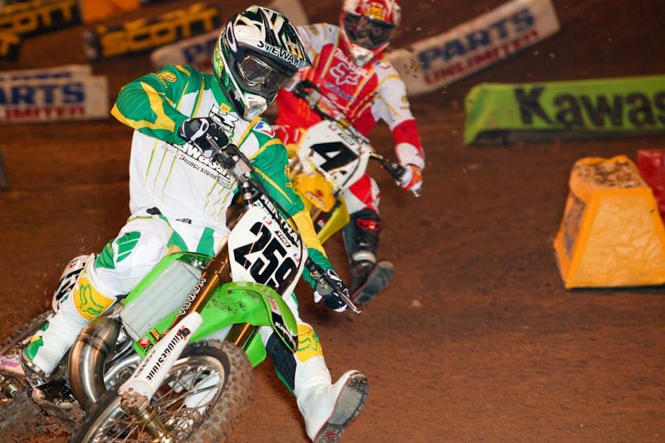 Time for another history lesson from Racer X—each week, we’ll hand over a nugget of trivia via This Week in Kawasaki Racing History. This week, we look back to Phoenix, 2005, a race that probably had as much hype and anticipation as Phoenix, 2011. The story revolved around James Stewart moving up to the 250 (now supercross) class for factory Kawasaki after becoming the winningest 125 rider in AMA history. The anticipation of Stewart’s big-bike debut was huge—especially when mixed with Ricky Carmichael returning to the series after a year off with knee surgery, and Chad Reed defending his supercross crown for the first time.
