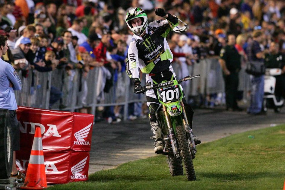 In ’07, Ryan Villopoto won the Anaheim opener ahead of a surprising performance by Frenchman Christophe Pourcel, who took second riding a Pro Circuit bike. Pourcel did one better the next weekend, as won the Phoenix race after Villopoto got a bad start. Better yet for the team, their third rider, Chris Gosselaar, finished third in Phoenix, giving the team a 1-2-3 finish. That’s five podium trophies in two races. Sound familair?