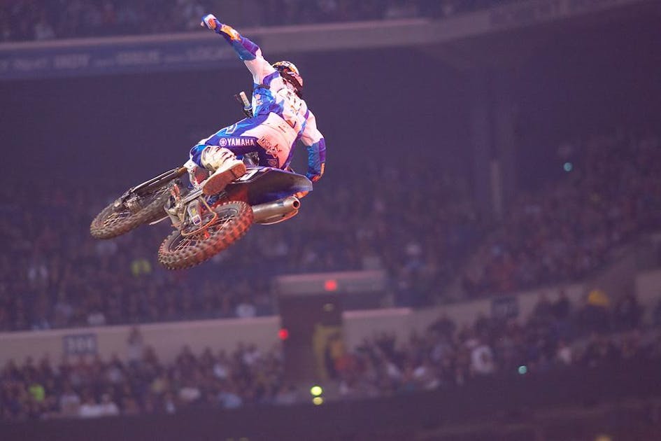 It seemed like the whole industry was pumped when DNA Shred Stix Star Racing Yamaha’s Ryan Sipes won the Indy SX Lites race. Sipes is a veteran of the Lites class, and he’s come so close to victory time and time again without ever finally getting it. On this night, he carried his speed from practice (he was fastest in both sessions) by winning his heat race. In the main, last week’s winner, Monster Energy Pro Circuit Yamaha’s Blake Baggett took the holeshot and held Sipes at bay early, but Sipes found his groove first and closed right in. Then Baggett bobbled on the finish line jump, landed on tuff blocks and crashed. Sipes took the lead and held off heavy pressure from GEICO Powersports Honda’s Justin Barcia. Barcia took two big shots at it on the inside of a few corners, but Sipes held him at bay to finally get his first pro win.