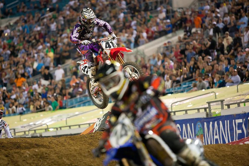 Coming off the high of winning that 2008 Lites East crown, Canard couldn’t keep the momentum going. He took a beating early and often in that summer’s AMA Motocross tour, missing a race with a concussion, then later breaking his femur when tangling with a lapped rider at Washougal. He wasn’t quite ready when the ’09 West Lites SX tour opened up, and he crashed out of the Phoenix race, eliminating himself from title contention early. He led most of the East West Shootout over Christophe Pourcel and Ryan Dungey, only to falter again while lapping a rider. He began to build momentum again early in the AMA Motocross Series, but crashed and broke his wrist while leading the High Point National.