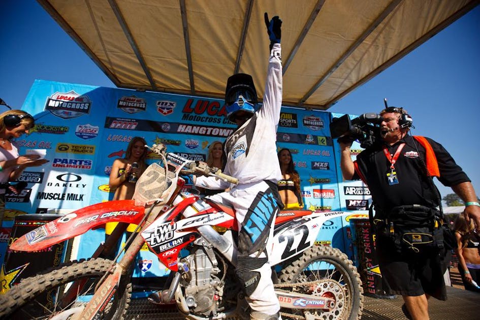 But the 250 class is even more loaded. This group is so evenly matched, it’s going to be a game of inches…wait, Blake Baggett was going FOUR SECONDS A LAP FASTER than anyone else during the final laps of the first moto. Even more impressive, Blake logged his fastest lap in moto one on lap 15 (of 16) and lap 11 (of 16) in moto two. Kind of reminds me of the old RC Pro-Am game for Nintendo, where the tan car would suddenly make this strange sound and take off late in the race with ridiculous speed. In the video game, all you could do was shoot the car with a missile before he was out of sight. Hmm. This all seemed much cooler before I actually typed it out.