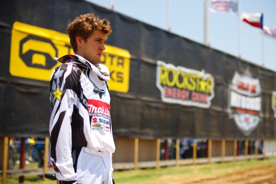 And then there was Rockstar/Makita Suzuki's Ryan Dungey. With the win in hand at the rutted-up Freestone National track in Wortham, Texas, the defending Lucas Oil AMA Pro 450 Motocross Champion saw his fuel overheat and boil enough to stop his motorcycle within a lap and a half of the second-moto win. It was painful to watch on Speed as Dungey kicked and kicked at the bike, then pushed it home—his frustrated mechanic Mike Gosselaar hesitant to help push because he wasn't sure if that would mean a compete DQ for outside assistance. (It wasn't until the AMA confirmed that he was outside the top twenty, and thus the points, that Goose was told to go ahead and help, which he did.)