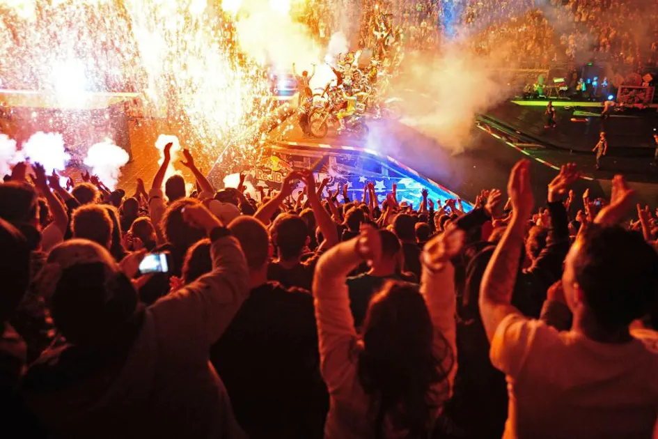 Travis Pastrana completes a double backflip rotation for the second time since his X Games debut of the trick in 2006.Nitro Circus Live / Melbourne June 5, 2010Rod Lavor Arena, Melbourne Australia© Sport the library/Courtney Crow Sport the library/Jeff Crow ![A large crowd on hand to watch the show & final fireworks2011 Nitro Circus Live Tour Wellington New Zealand Westpac StadiumWednesday Feb 9th 2011© Sport the library / Jeff Crow]()