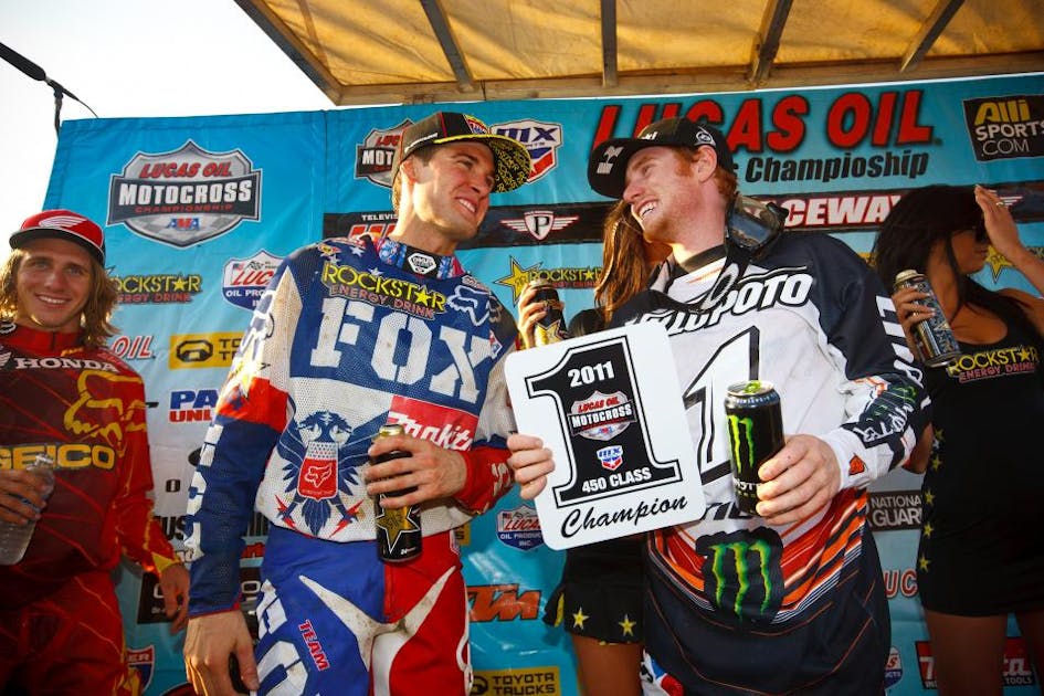 One of the most competitive and compelling seasons in the 40 year history of American Motocross came to a fitting conclusion this afternoon at the Traxxas Pala National in California, with Ryan Villopoto overcoming one more small contribution of drama to claim the Lucas Oil AMA Pro Motocross Championship in the 450 class. His title rival Ryan Dungey claimed the 450 overall win via 2-1 scores, but both he and Villopoto had to overcome bad starts in both motos, and race it out for a championship while coming through traffic, which only made the race more exciting. The 250 class was fun to watch, as well, with Dean Wilson winning two close races to go 1-1 and win the overall, a cap on his 2011 250 Championship campaign.