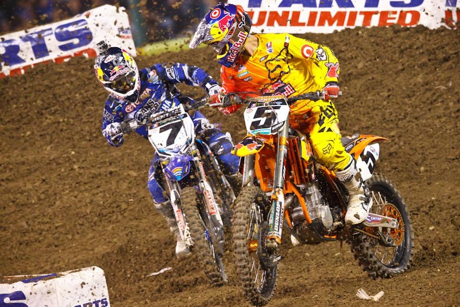 And faster than you can say “Roger Decoster,” KTM’s 40-plus year drought of never making the podium in the premier class in supercross is over. In his very first AMA Supercross race for the team, Ryan Dungey rode strong to get the final spot on the box. And Dungey did something in his first race on orange that I don’t believe he did all year last year: catch and pass James Stewart. That had to make him feel good about signing with the Austrian OEM. The all-new 450 looked pretty good out on the track, and in the pits. In my mind, it’s the coolest looking bike out there.