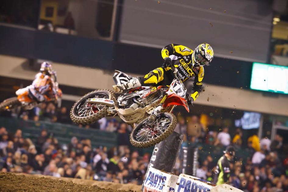 Since then, Eli Tomac has been on the rise, and last night in Oakland he took firm control of the West Region Lites title chase—a title he more or less blew last year when he was out-maneuvered in a frantic finale by Broc Tickle in Las Vegas.