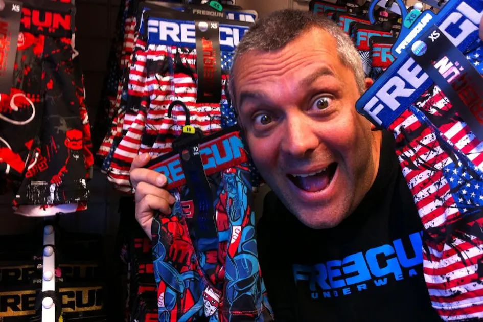 About a year ago Sylvain Caire, CEO of Freegun, approached me and asked me to launch the brand in the U.S. Those guys sell about 500,000 pieces of underwear a month in Europe and they were ready to conquer a new continent. There is definitely a place for Freegun. We are the only underwear company that can offer diversity. Everything else out there is grey, white or black. Not Freegun. I became part owner in Freegun Inc. and I started working as the Brand Director coordinating the Marketing and Media Relation. My wife Karen takes care of Sales and Distribution. We operate from a warehouse and an office in Las Vegas where everything is being shipped out.sa