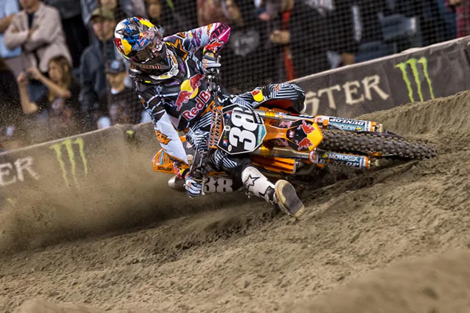 This next picture is of Ryan Dungey passing Justin Brayton. What I wanted to touch on here is the way the pass was made. Dungey set him up in the section before so when they came into this section Dungey had the inside, so he was able to shut Brayton down. If you will notice, the 450 class is a cat and mouse game with the top riders. When they’re behind someone they’re constantly trying to put themselves in a position so they can cut underneath and shut a rider down. Just like Dungey did here. RV has seemed to thrive on doing this. If you pay close attention, he makes most of his passes by shutting down a riders line—a very cool thing to see.