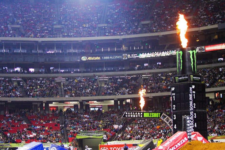 Hello, everyone, and welcome to the Rev Up. It’s that time of year and the diesel is puffing black smoke on all eight cylinders. What’s that noise? Put your ear to the train tracks and you can hear the crackling thunder of 70,000 strong. It isn’t the numbers that cave your chest in, rather the substance behind them that packs a punch. We got the crazies out for this one. Rabid motocross fans compose the southeast venue of the Georgia Dome, and they’re ready to eat. They’ve sat dormant while the West Coast selfishly hosted the charge and now the Beast of the East is ready for dinner. Everyone knows what time it is. The latest, and what could be the greatest, Battle of Atlanta has arrived.