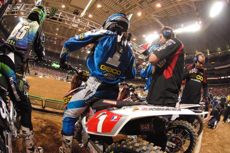 It’s funny how sometimes pit rumors go around. Early in the season it was thought by many that James Stewart wasn’t winning because he wasn’t in shape and I have to admit, I thought this was totally plausible. He did seem to be huffing and puffing a little more after his heat races, and near the end of Anaheim 1, he experienced a crash that some people felt was due to fatigue. But soon after that, he won Oakland in a great ride that saw him pull away from Chad Reed and RV late in the race. At Dodger Stadium, he was going faster than everyone late in the race. And Anaheim 2? Same thing. Dallas? Yep, he was on it at the end of the race. This “theory” that he wasn’t in shape wasn’t supported by the lap times, and I quickly dropped it early in the season. But now those same rumors are back out there, and they seem to be supported by more and more people in the pits. I wonder if any of these people look at lap times and see that JS7 isn’t getting any more tired than Dungey and Villopoto, two guys who are definitely considered to be in shape.