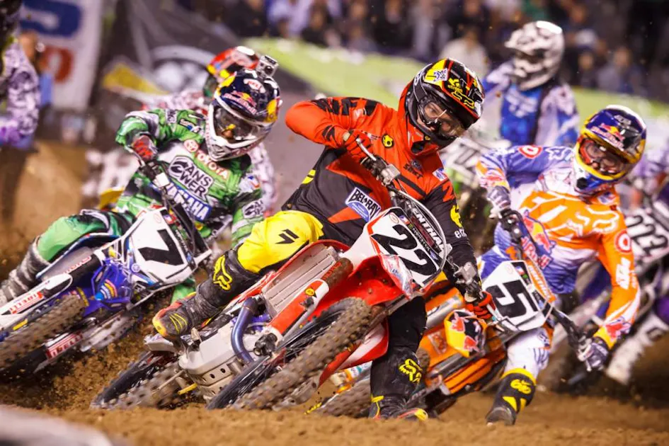 For example, think back to any preseason bench-racing conversation you had that entailed making predictions for the year. You keyed on Villopoto’s confidence, or how the #1 plate might affect him. We talked about the changes to his 2012 KX450F or hard work with his trainer Aldon Baker. We marveled at his unique and incredibly effective riding style. Then we did similar things for his opponents. Ryan Dungey talk centered on his new team and bike and old relationships with his new bosses. And James Stewart? We went around and around wondering if James’ old bike brand and new team could get him back to his old heights, while simultaneously wondering if James doesn’t dominate only because today’s competition, like the Ryans, have gotten too fast to be dominated.