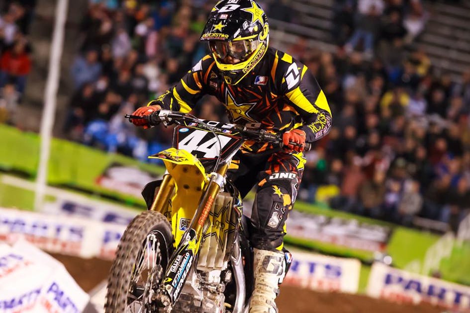 One spot better came his teammate Jason Anderson. Once a shining star in the amateur ranks—a Suzuki teammate, in fact, of Eli Tomac, and a rider capable of beating the new West Lites SX Champion—Anderson’s pro career has not started at all like Tomac's, who won the first race he ever entered. Anderson’s 2011 rookie campaign was so bad, that Team Manager Dave Gowland actually sat him for a few races during the Lucas Oil Pro Motocross Championship, allowing Anderson to rebuild his training program from the ground up. Anderson progressed a bit toward the end of the summer, and carried that improvement to supercross this year. He rode better, but still, no podiums. As an amateur, Anderson was known as a fierce, aggressive, let-it-all-hang-out charger. So far as a professional, though, that fire seemed to be missing.