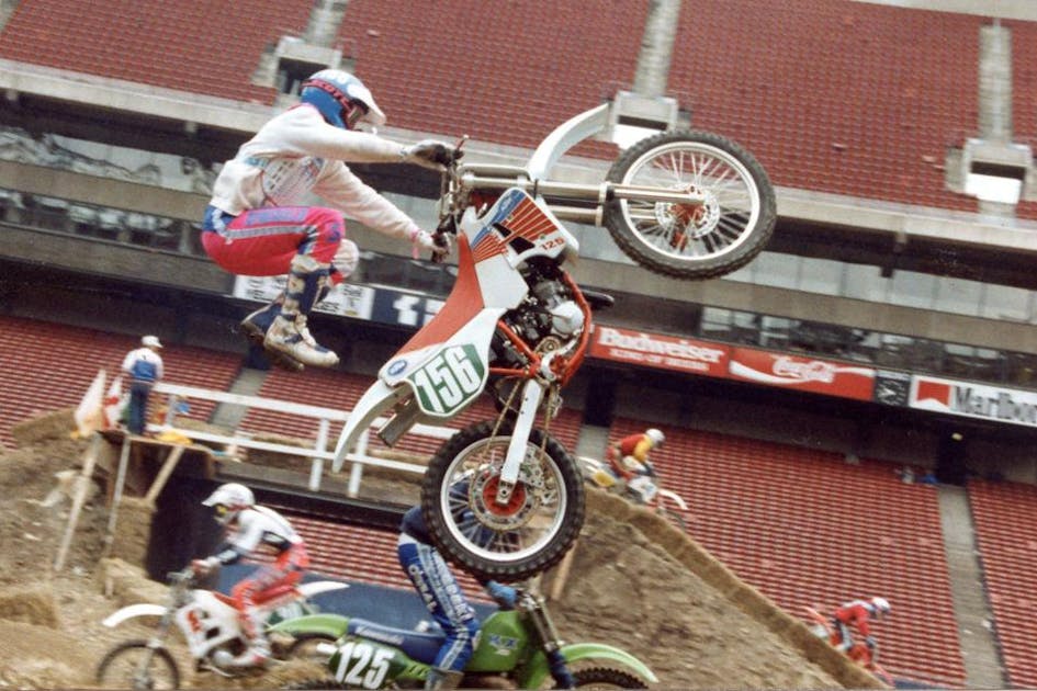 While digging through the Racer X photo archives the other day, we came across 15 mint, glossy shots of the old Meadowlands race in New Jersey, shot by Thom Veety of Action Photos. See, there was a time when AMA Supercross events would host amateur days on Sunday, offering local riders a chance to ride on real supercross tracks... That didn't go over so well, as you will see here. The men you see out there in Monster Energy Supercross are the best of the best, the world's most talented and precise riders, and the tracks have evolved, along with the race bikes. No, they don't hold amateur SX races in the stadiums anymore...