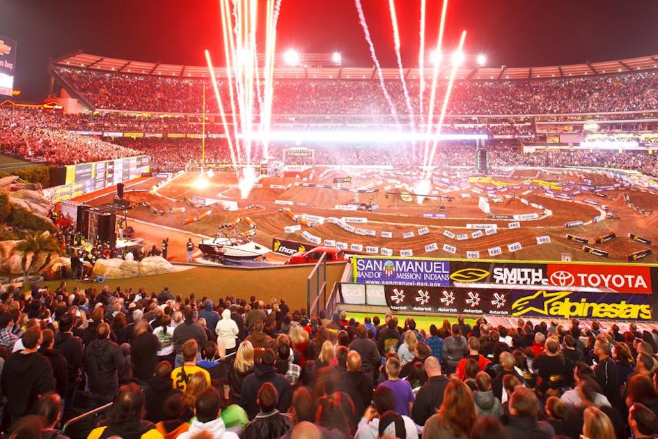 The day time activity will quicken the anticipation, but the real juice comes when darkness cloaks the stadium and her seats fill to capacity. It’s a hell of a thing to be inside a packed Anaheim 1. There is nothing like it and no race of the year really gets to that level of chest thumping. Then they shut down the lights everyone goes nuts. All of the hype lets go in a primal frenzy as the horde goes berserk for a few seconds. Credit to Feld and Monster for the opening ceremonies and something tells me they’ve pushed it up to a new level for ‘13.