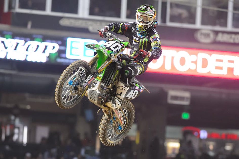 Wasn’t looking much better in Phoenix. Baggett cut his cast off and tried to ride practice, but his wrist locked up, resulting in a wild crash that launched his KX250F off of a berm and flying—without its rider—a good 20 feet. Somehow Baggett escaped without (additional) injury, but he decided that riding with a broken wrist wasn’t going to work. He may need surgery, and now could be out for the rest of supercross.