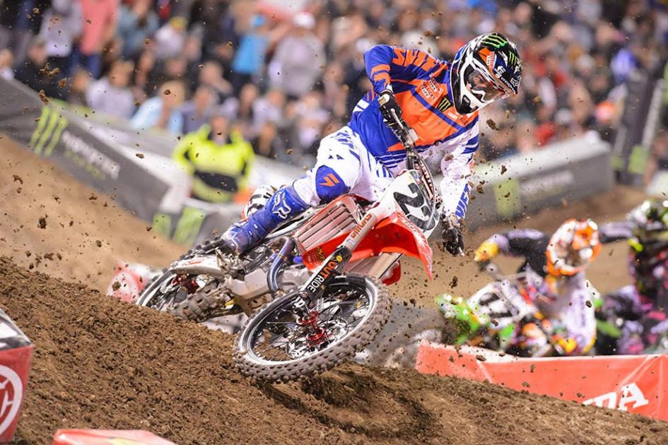 “Obviously San Diego, I probably have the best memories from it, and the fact that I'm the winningest rider there means a lot,” said the TwoTwo Motorsports Honda rider when asked about the race. “I believe every time I've been there but once, as a full-time rider in the big class, I don't believe I've missed the podium. I just go there, and for some reason, the atmosphere, the dirt, the stadium, it has a special feel to me. It was my first ever race in the U.S. when I tried one in 1999. Now it's grown into kind of like my home event. I also like that it's the first football stadium we race in each year after all the baseball stadiums, and I've always preferred the layout of the football stadiums. They started using new dirt there a few years ago, and it's actually more like Anaheim dirt now. It's harder, where it used to be a little softer and rut up more. For me it's really just about the vibe--if you go to a race you're dreading, it seems like it never starts off good, where when you go to a stadium that has worked for you in the past, everything feels good all day.”