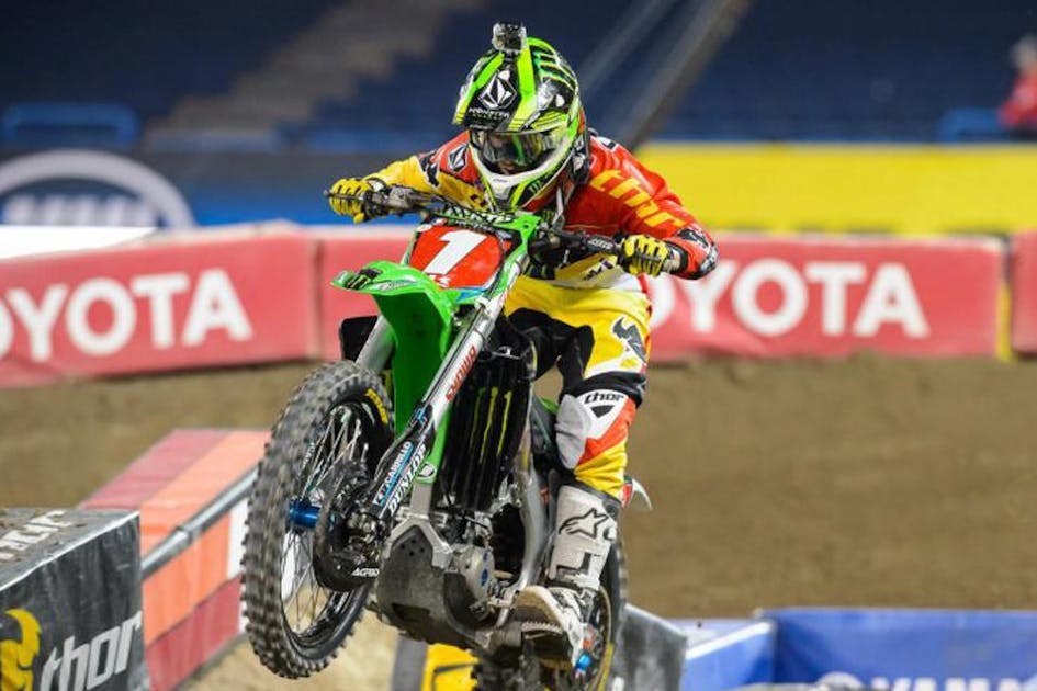 Two-time defending SX champion Ryan Villopoto (Monster Energy Kawasaki) continued his torrid pace that he’s shown over the last five rounds in practice—setting the fastest time of the day. James Stewart (Yoshimura Suzuki) was flowing in practice as well, blowing out berms, and blitzing a tough whoop section. Stewart was one of few riders that were taking the left side of the whoops, which he made seem faster, while other guys that took the same line struggled. Justin Barcia (Honda Muscle Milk), who held the fastest time for a moment, was third with Ryan Dungey (Red Bull KTM), Davi Millsaps (Rockstar Energy Racing), Justin Brayton (JGR Yamaha), Chad Reed (TwoTwo Motorsports), Broc Tickle (RCH Suzuki), Matt Goerke (BTOSports KTM), and Jimmy Albertson (HRT Honda) rounding out the top 10.