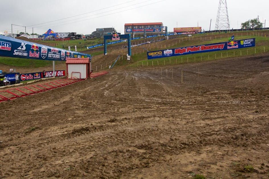 Welcome to Racerhead, to the GEICO High Point National, and to a rainy day in the motocross world. Of course it's raining—it's High Point. So today's open amateur practice was scratched in order to save the track for tomorrow's fourth round of the 2013 Lucas Oil Pro Motocross Championship. But the weather reports look great for tomorrow, so maybe we won't have mud after all!