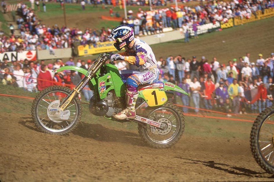 After riding for Team USA twice on a Honda CR125, Mike Kiedrowski (#1) got the call to ride the 500 in 1993 in Austria and helped deliver a thirteenth straight win.