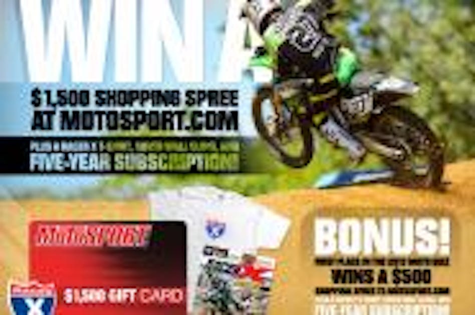 Bonus Prize: $500 MotoSport Shopping Spree, a five-year Racer X subscription, a Racer X t-shirt and a Racer X Illustrated cover wall cling.