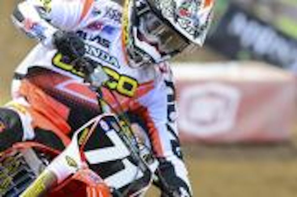 Eli Tomac was a race-day decision for the GEICO Honda team in 450SX after a crash last week in his Anaheim heat race left him with a bad shoulder. He tried suiting up today but couldn't ride. Team Manager Mike LaRocco says the injury doesn't require surgery but Eli will now probably take a week or two off before getting back on the bike. "We'd like him to get in a full week of riding before he comes back to race," said LaRocco. "Now that we've missed two rounds there's no reason to rush."