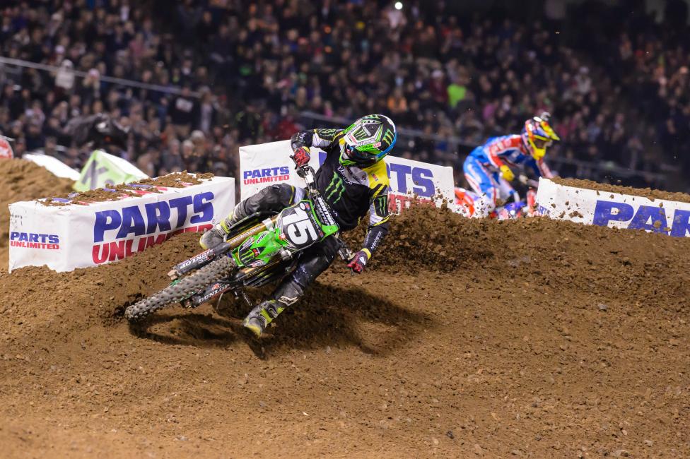 I got off to a slow start in the beginning. I was just trying to get into my groove. I was in fourth and made a pass to get into third, and then Stewie got by me. Honestly, I was just trying to reel in Chad [Reed]. Stewie got by me and passed Chad, and I was trying to keep that pace and follow him though the pack. I was right there by Chad the whole last part of the race and was just unable to make the pass with the lines out there. Nothing really came about and I couldn’t get close enough. Chad was riding really good tonight, as was Ryan [Villopto] and Stewie. It was a good day. We kind of fought things in practice, but we were making good improvements. We’re going to do a little work this week and try to get better. This is the first time we’ll be testing this year during the season. Hopefully we can come up with some good stuff. Everything is there. I just need a little bit better of a start and little bit better positioning on the track, then just keep bringing that intensity.