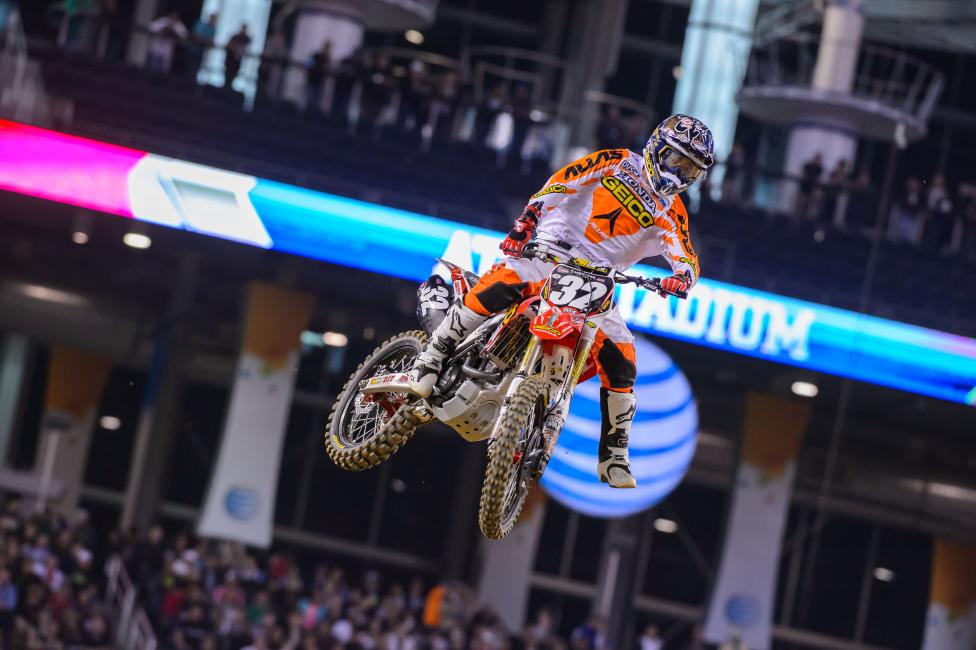 Yeah and I just need to go back and basically do that. That’s what it would take probably all year to end up with a championship at the end. So if we could just be right there all year, and at the races that we can win, then win. But tonight I just didn’t have it. We’ll get more time on the bike and hopefully we can get up a little bit more endurance. I started to tense up like lap nine. I looked up at the board and I was like, “Man, my arms are already pumping up!” That’s from not having enough time on the bike, I think. So just put time on the bike and I want to be there at the end. If it takes not winning a race at all like some people have done it to get a title, then that’s what we’ll do. I want to get a title so that everybody on the forums and all that stuff … Just would like to get a title so I can have myself established as indoors and out, and see what we can do. – Jason Weigandt