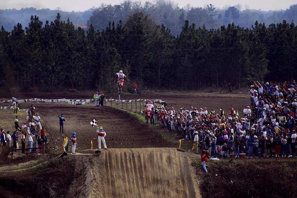 Finally, in 1984 at the Daytona Supercross, Team Honda’s David Bailey won the main event, but it was the battle to the finish line between then-Yamaha-mounted Ricky Johnson and champion-to-be Johnny O’Mara, who launched his works Honda in an all-out bid to beat Johnson, clearing one of Gary Bailey’s infamous “gator pits” in an epic leap that caught everyone off guard. You can read all about the moment and the jump right here.