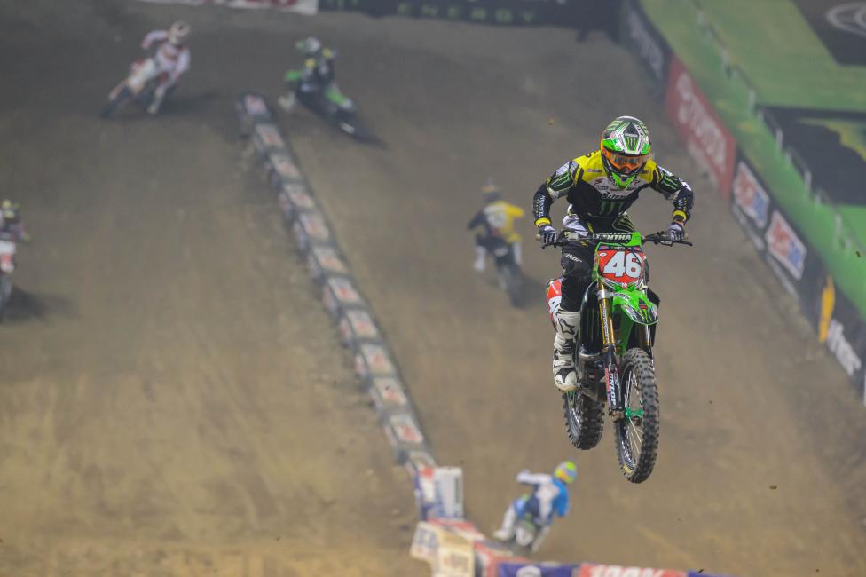 No, obviously the last two, Daytona and Indy, weren’t slippery. They were very soft. It’s weird coming from such soft tracks to like a Dallas and then here, I would actually say this was slicker than Dallas, to be honest with you. A lot of the transitions here were pretty steep and gnarly so you really couldn't soften your bike up for the corners. I think that’s what made it very hard to manage the stiff suspension in the really shiny spots. Like that little left-hand corner before the mechanics area, going up over that wall after that. All those little times you’re turning on blue rivets. You saw it happen to [Jeremy] Martin, you could wash the front at any second. I almost washed the front end probably, I don’t know, 30 times. Every single time, literally, in that old Pontiac section that goes up in the stands, I literally washed my front end every time there. I thought I was going down any second, but couldn’t let up at all. I think the tracks are slippery, to be honest with you. I don’t think it has anything to do with how hard we’re pushing. Obviously when you’re pushing that hard it’s easier to crash and make mistakes but this track anyway was super loose and just had an unbelievably hard base.