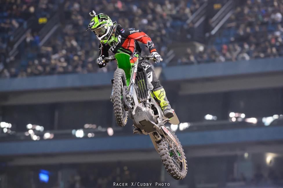 Stewart’s monumental win wasn’t the only history made in Toronto. GEICO Honda’s Justin Bogle, on the heels of a career-best second in Detroit, rode to a dominating win in 250SX, the first of his career. The biggest news in 250SX may have come during practice, though, when points leader Adam Cianciarulo went down hard in the whoops and suffered a shoulder injury. Cianciarulo was able to gut out the second timed practice and his heat race. But in the main the wheels came off. While in second, Cianciarulo’s shoulder popped out for a second time, ending his night and his time atop the points lead. With a second place finish, Monster Energy Pro Circuit Kawasaki's Martin Davalos has taken back command of the East Region. He currently holds a four point lead over Cianciarulo and a five point lead over Bogle. JAB Motorsports’ Matt Lemoine would finish third for his first career podium after holding off a late charge from Blake Baggett and Jeremy Martin.