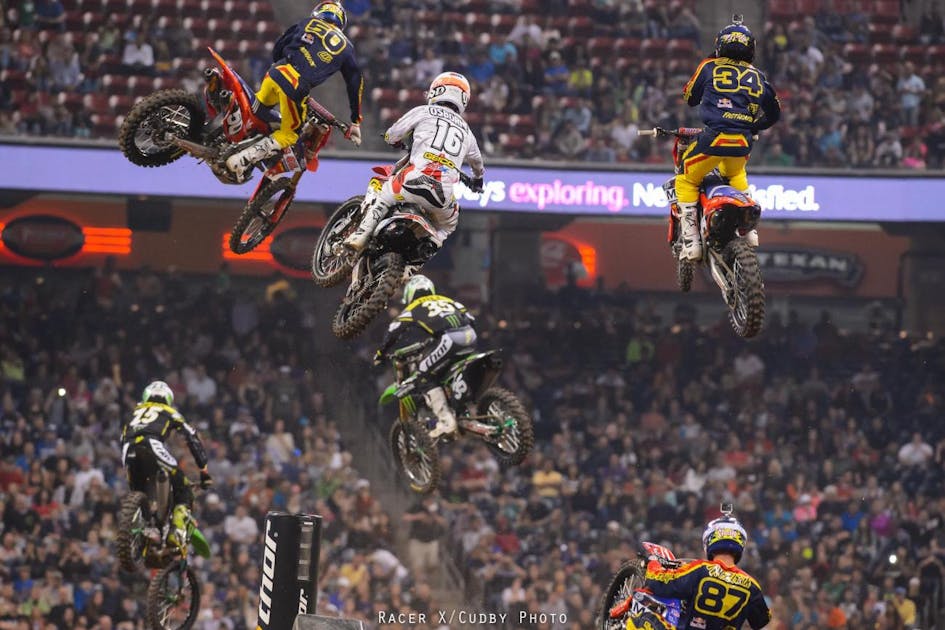 While the Rockstar KTM team was pumped to get a win from Jason Anderson, there was bad news for its 450-class fill-in rider Cole Thompson, who popped his knee out during the qualfiers. We’ll follow up on Cole in a few days to check his Seattle status.