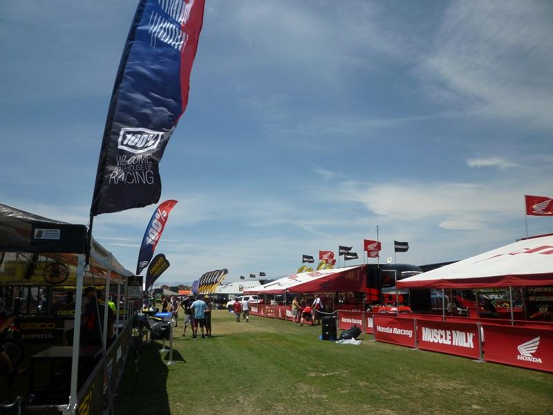 Welcome to the final supercross practice report of the year, coming to you from the press box in Sam Boyd Stadium in hot and sunny Las Vegas. And when we say hot and sunny, we mean sweltering. Temperatures have been in the upper nineties all afternoon and a steady breeze has been blowing all day, resulting in dirt that loses moisture as fast as the track crew can lay it down between practices. In fact, the wind blew so hard in the morning that more than a few easy ups and tents lost their tops or got mangled in the wind, leaving several privateers in the unenviable position of having no escape from the vicious Vegas sun.