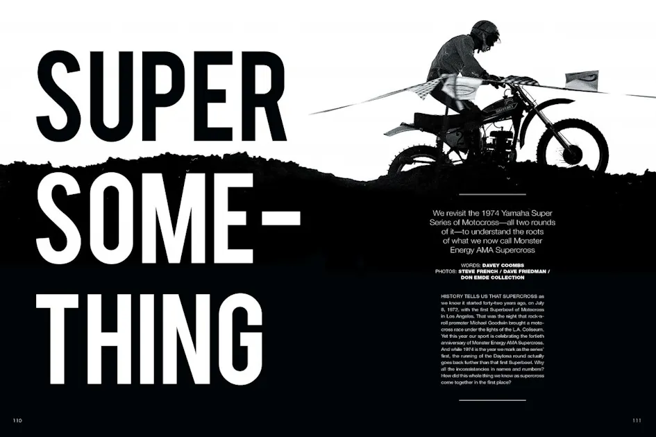 From those few photos, along with some beautiful old black-and-white shots by Steve French, we were able to pull together a look at what was then called the Yamaha Super Series of Motocross, but what we all now know as Monster Energy AMA Supercross. It's amazing how different it looked back then, and also how small and downright cool it was too. That's why we called the whole story "Super Something."