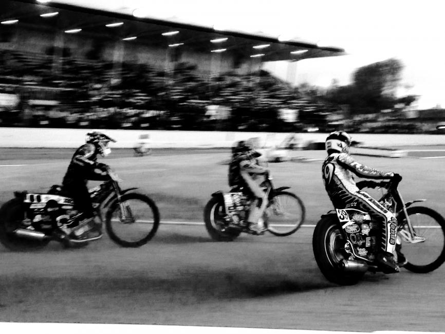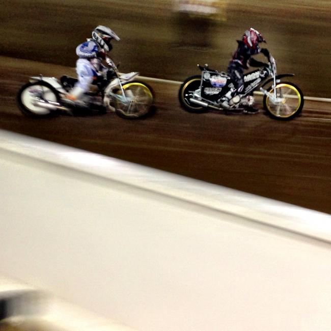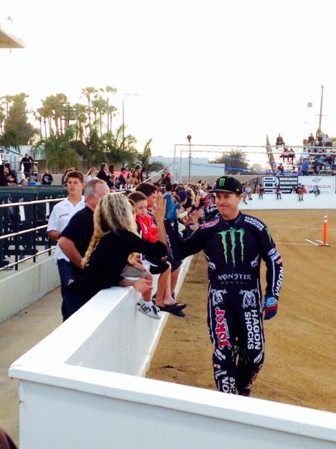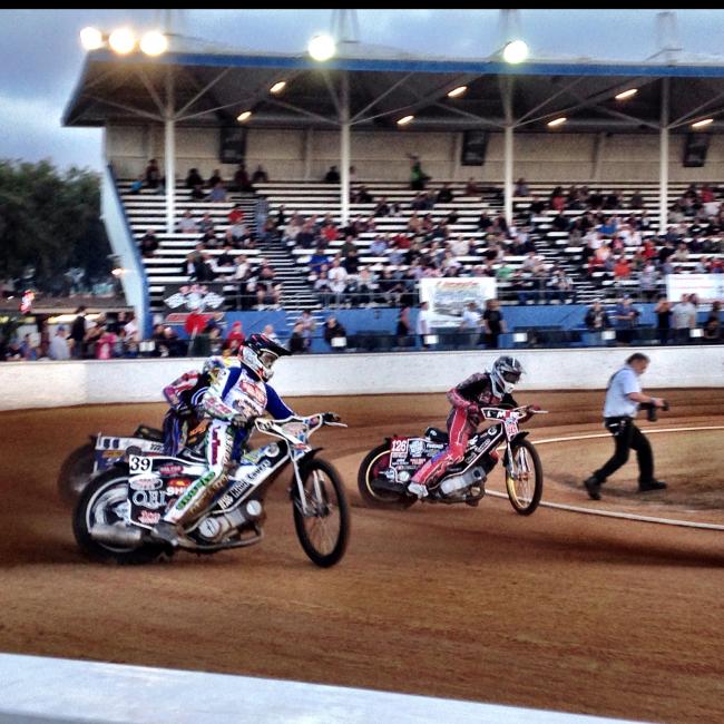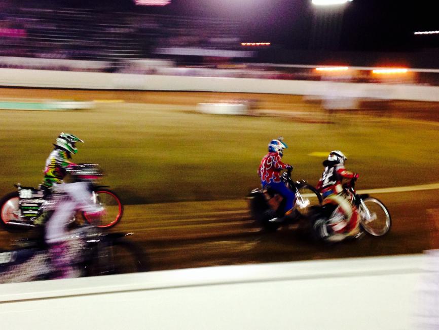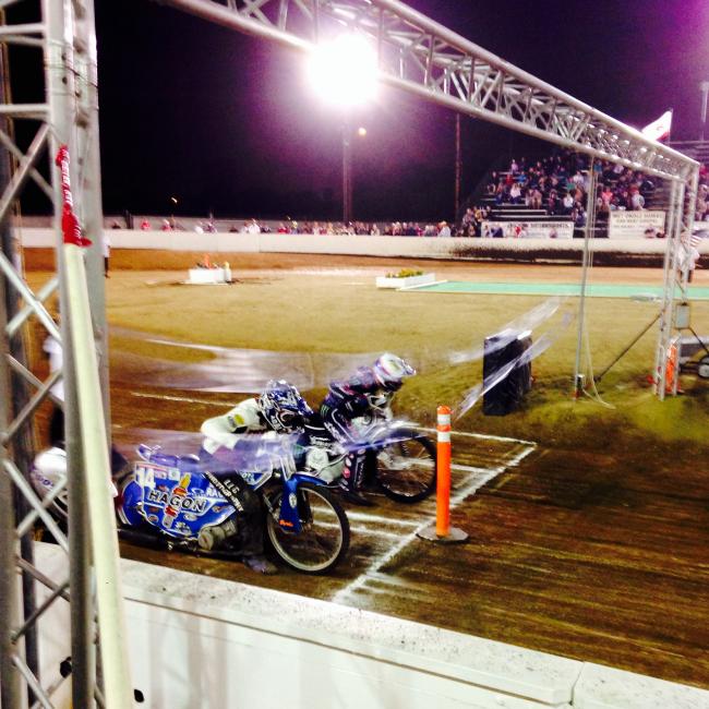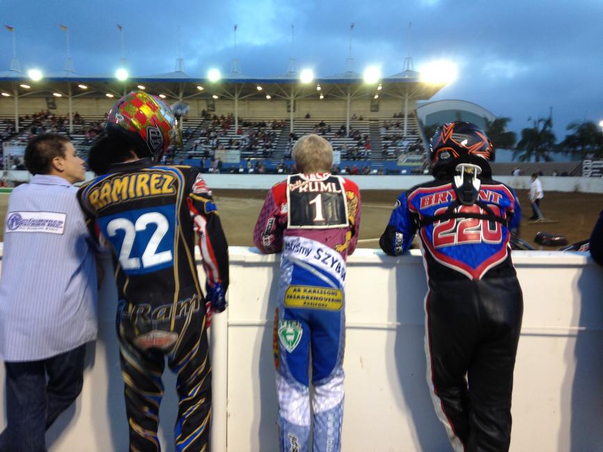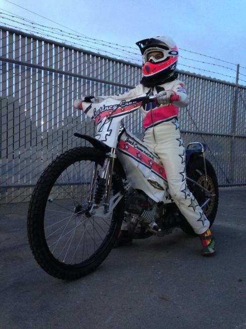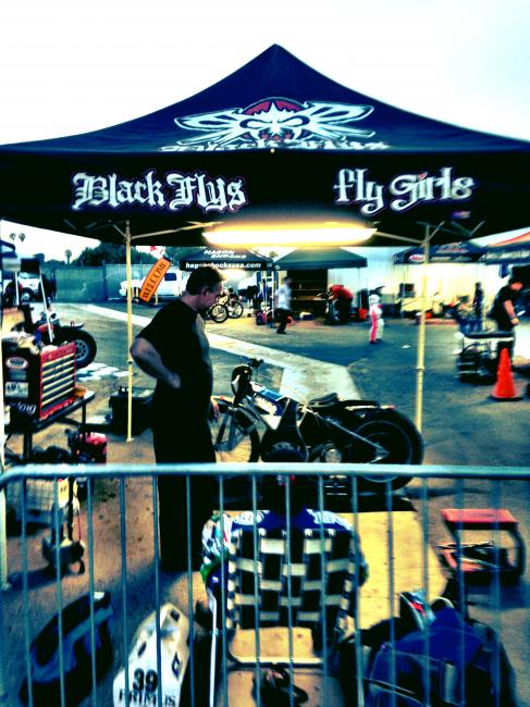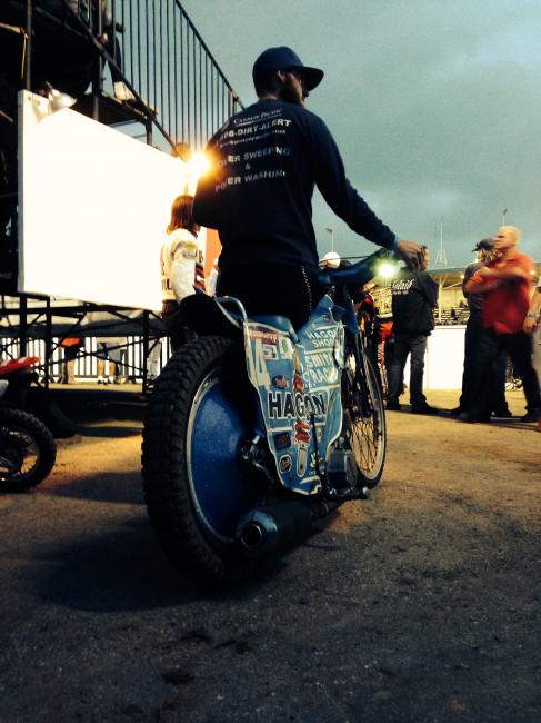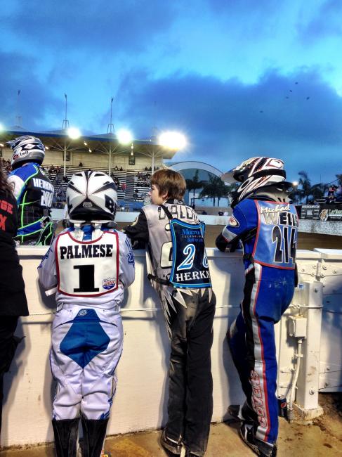 Costa Mesa Speedway has been around for nearly fifty years, and like every other form of motorsports racing, it’s had its ups and downs. Stars like Bruce Penhall, the Bast brothers, “Sudden” Sam Ermolenko, Greg Hancock, and Billy Hamill cut their teeth at Costa Mesa, which the Oxley family has run since 1969. The place is just flowing with nostalgia, and the crowd was really into the racing—especially when some of the younger stars like Courtney Crone and Sebastian Palmese were out there sliding around. The races are fast and short and the bikes exotic (#NoBrakes) but the racing was awesome.