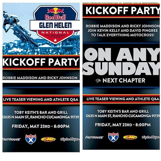 Oh, and if you’re in the area, make sure you swing by Toby Keith’s Bar & Grill in Ranch Cucamonga tonight at 8 p.m. for the big Glen Helen Kickoff Party, which will also feature a teaser for the upcoming On Any Sunday: The Next Chapter. Ping and Racer X's Jason Weigandt (Kevin Kelly wasn't able to attend) will be on hand talking to Robbie Maddison and Ricky Johnson, so it’s not something you want to miss!
