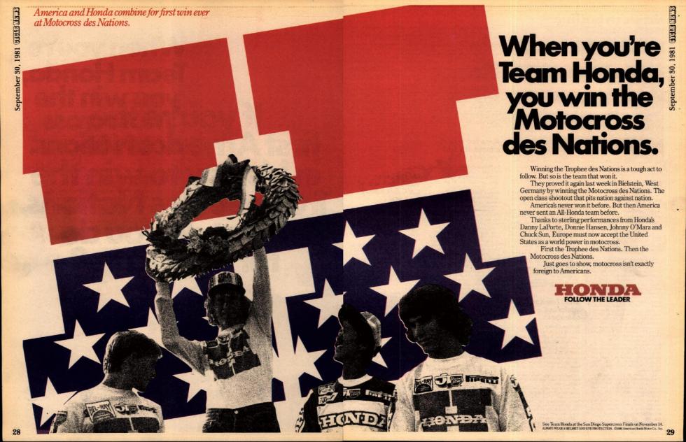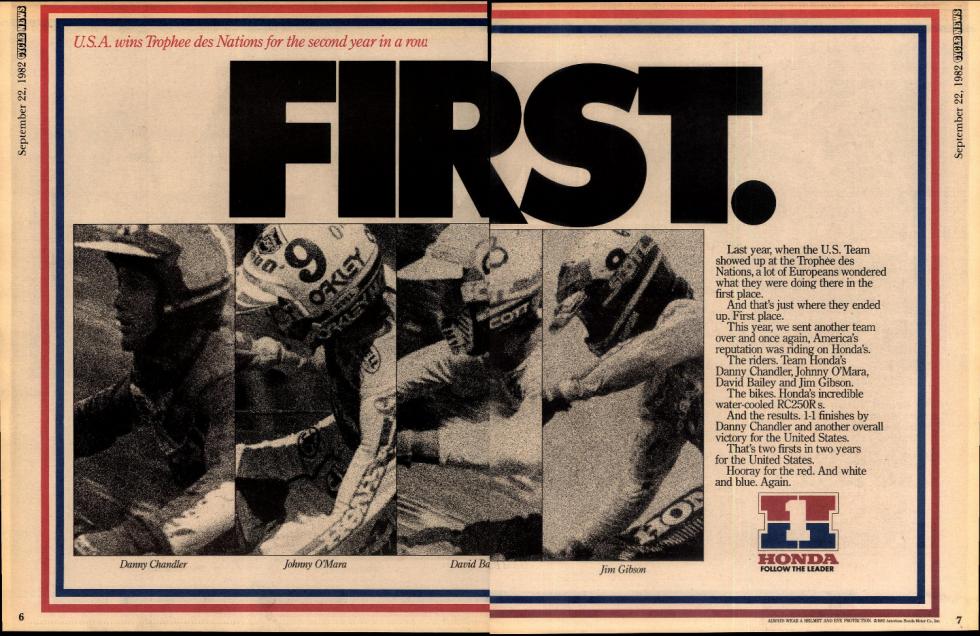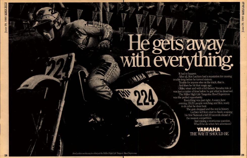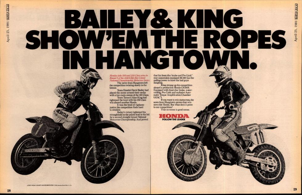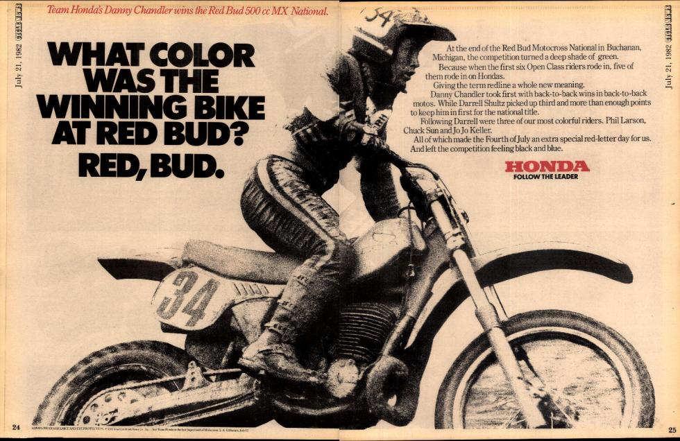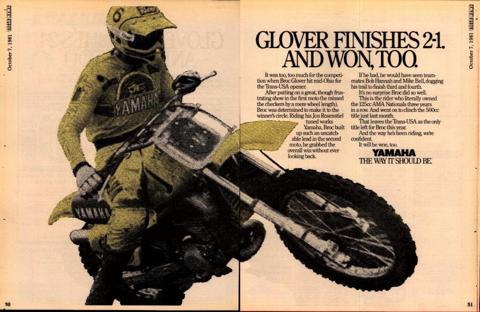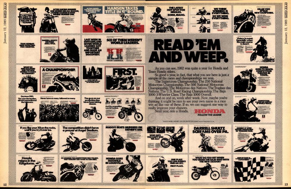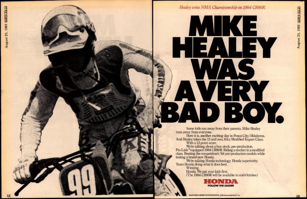 Eric Johnson used to be one of those "Mad Men" who wrote advertising copy, including some Suzuki win ads after graduating college and moving out to the west coast. As a result, he's always kept his eyes open for cool win ads, especially from the 1980s, his favorite era as a young motocross fan. With the sweet Cycle News archives now online, EJ recently went through a few years and pulled out these amazing advertisements featuring superstars like David Bailey, Broc Glover, Johnny O'Mara, Ricky Johnson, Danny "Magoo" Chandler and more. Check them out and see which ones you remember!