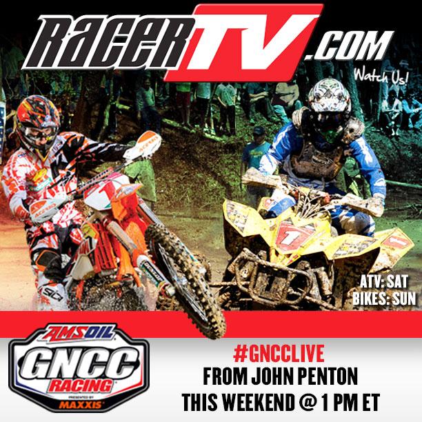 Round eight of the Amsoil Grand National Cross Country Series, presented by Maxxis, from John Penton can be seen live on RacerTV.com beginning Saturday afternoon. Coverage of the GNCC ATV begins at 1:00 p.m. ET on Saturday. Following GNCC ATV on Saturday will be live coverage of GNCC UTV beginning at 4:30 p.m. ET. On Sunday, live coverage of GNCC Bike can be seen starting at 1:00 p.m. ET. Tune to RacerTV.com all weekend to catch live coverage from Sunday Creek Raceway in Millfield, OH.