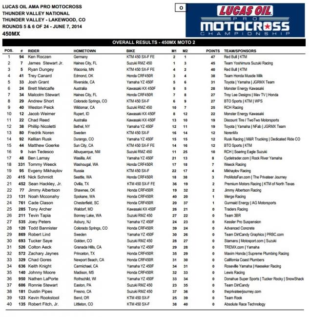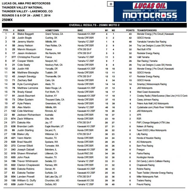 Results: Toyota Thunder Valley National June 7, 2014, 8:10pm Aaron Hansel Home Breaking News Results: Toyota Thunder Valley National - Motocross Lakewood, CO Thunder ValleyAMA Pro Motocross Championship