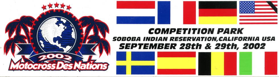 San Jacinto, CA; September 23, 2002- With more than 20 teams, representing countries from Australia to Venzuela, the FIM stated that the Motocross of Nations will not be held in the US, but relocated on a new date in Spain.