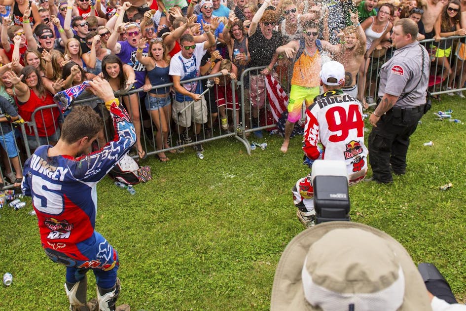 RedBud, then, becomes a celebration of the sport as a whole, not any one rider or team. Doesn’t matter if the winner is local or foreign, established or a noob, the fans support it all. When you consider the myriad of options for fun on Independence Day weekend, there’s a real sacrifice to be made to go to this race. On a random weekend, the motocross or supercross race might be the best show in town. But everyone has fun options on this weekend, and surely people are blowing off family cookouts on the deck, or time on the boat, the beach, or the lake to make it to this race. The last time I’ve really been “home” on July 4th weekend was the darned 1990s, and back then I was in college. My adult life has always centered on RedBud for the Fourth, and I’ve gone there, like many fans, through hell or high water. One year I separated my shoulder the week before the race, got surgery (which I was told “wouldn’t be so bad.” Note to everyone: there’s no such thing as surgery that doesn’t hurt.), hopped in the Racer X green van, and ate pain pills all the way. Didn’t even need a drink to party that time! Another year, I broke my wrist right before it (yes, both of these were riding incidents—happy summer!) but took the ride to RedBud in a fresh cast. We even stopped at the popular Cedar Point amusement park on the way back home so I could nail everyone in the face with my cast while trying to put my hands up on the roller coasters. Nobody cared.