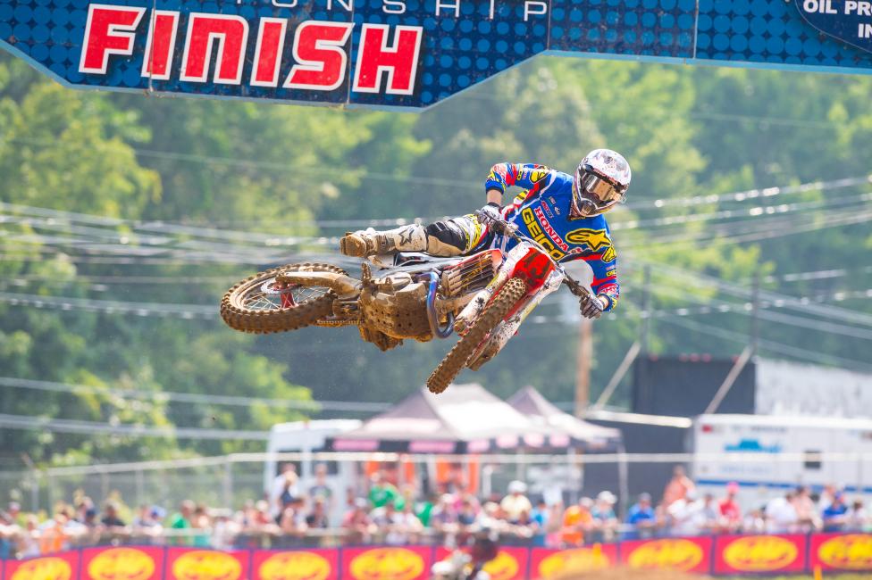 I guess not every moto can be awesome. I feel I have been going pretty consistent, and it’s exactly what I’m trying. I think it was after the first lap I stomped my foot on the ground right there, and I hit right on the inside of the knee, and there’s kind of like a funny bone. I don’t know if I hit on the foot peg with my knee or something. It kind of took my breath a little bit away for a couple of laps. I had to settle down and allow Ryan [Dungey] to get quite a good gap. I struggled on some parts of the track. It took a lot of patience I think and riding smart. I feel like today I just wasn’t the best, especially not in that second moto. Ryan obviously rode awesome, and Eli [Tomac] too, and got a little closer towards the end. I’ve just been trying to hang in there. Like I said, I don’t think every single race can go 100 percent well, but if I can consider this one of the not-so-good races then I’m really happy.